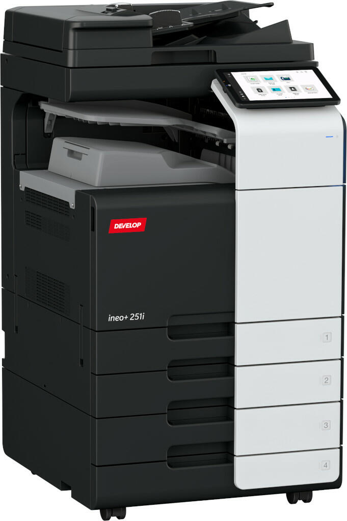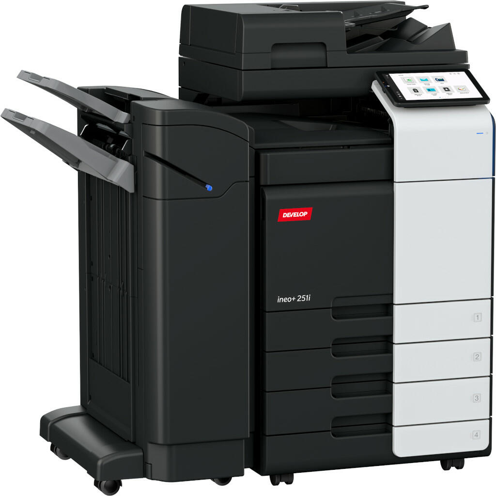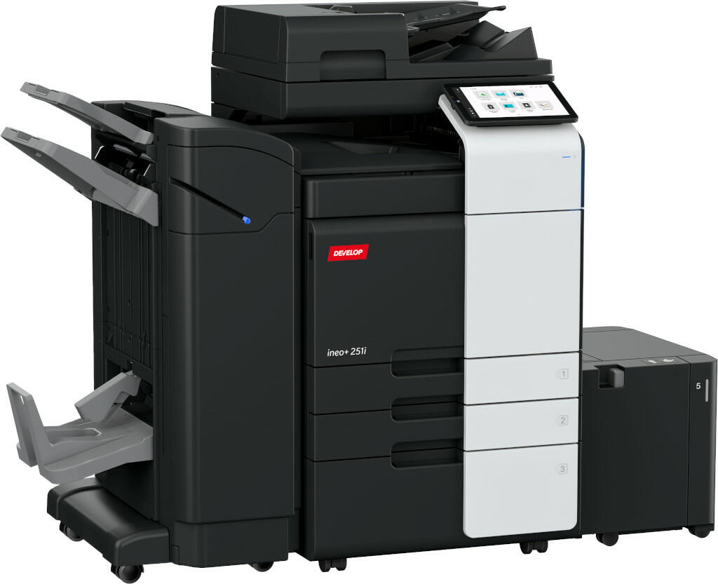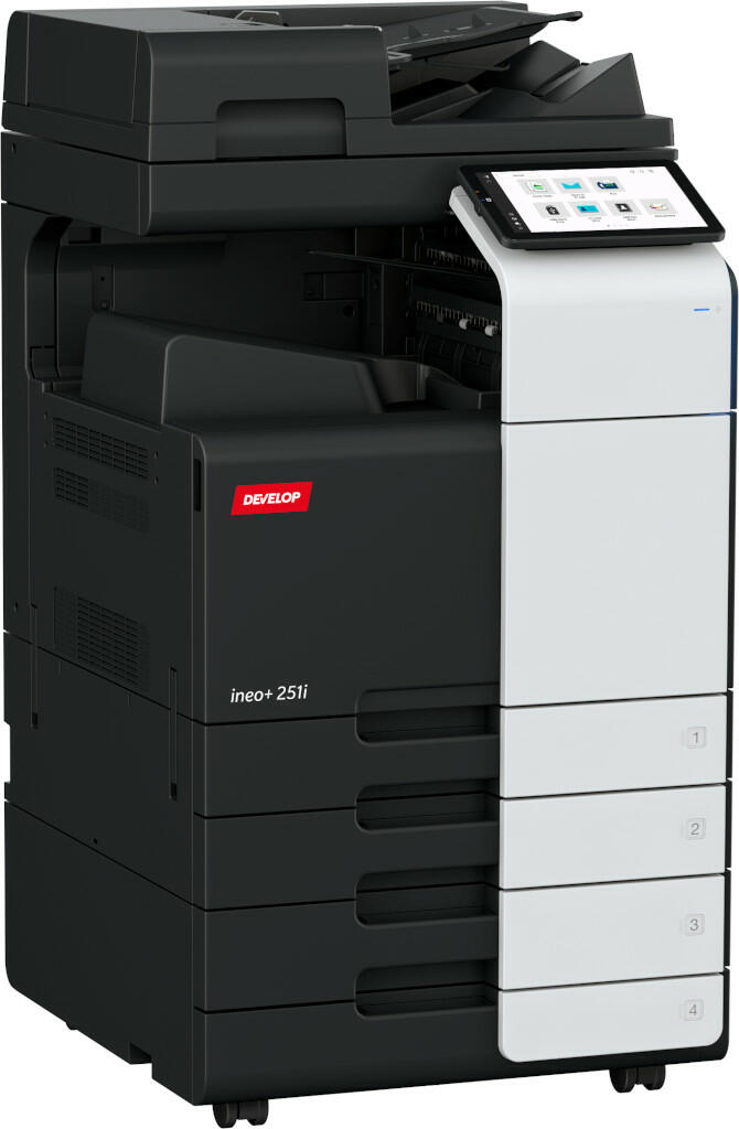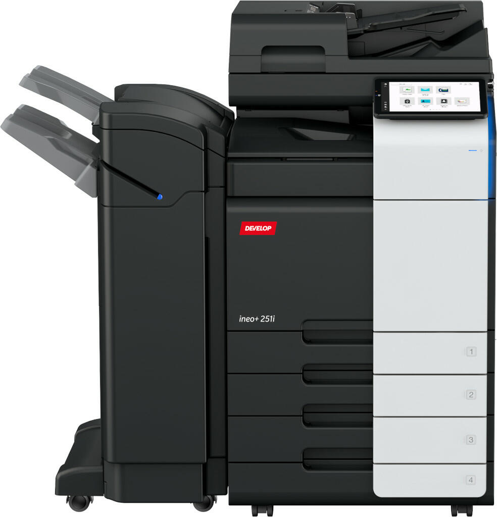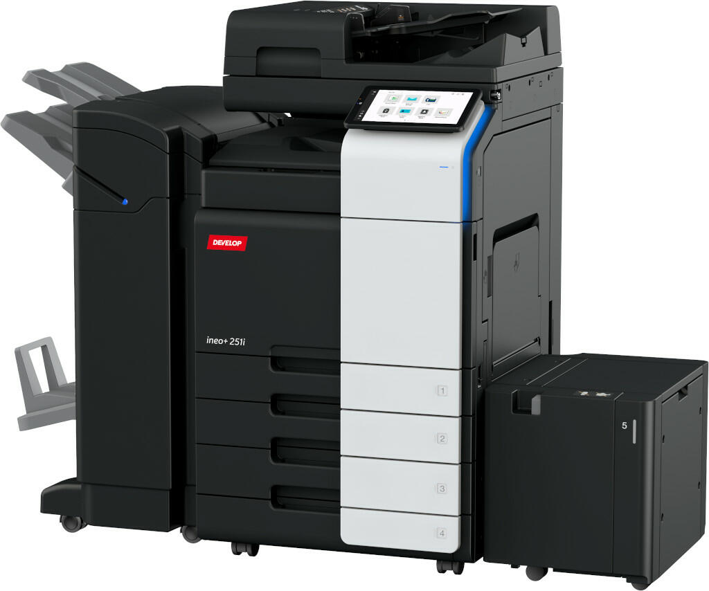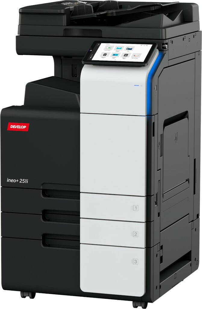 Hned na první pohled je ineo+ 251i pořádná stylovka. Moderní kombinace černé a bílé, elegantně zaoblené hrany a příjemně tlumené modré světlo pulzující při tisku. Ovládací panel, který jakoby se vznášel. A haptická odezva při dotyku displeje přidává ovládání hmatový rozměr.